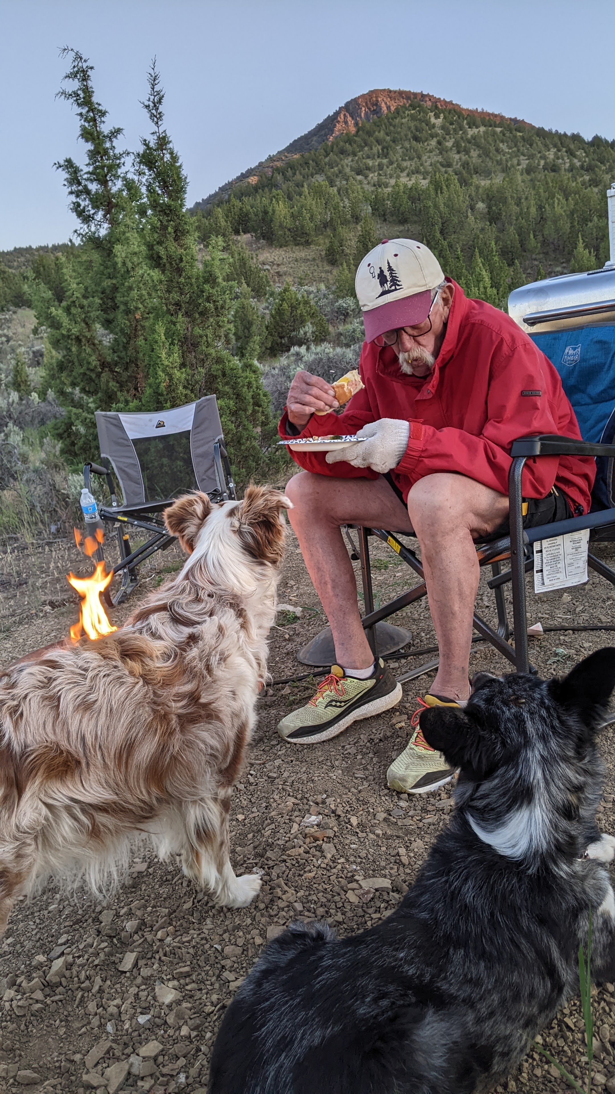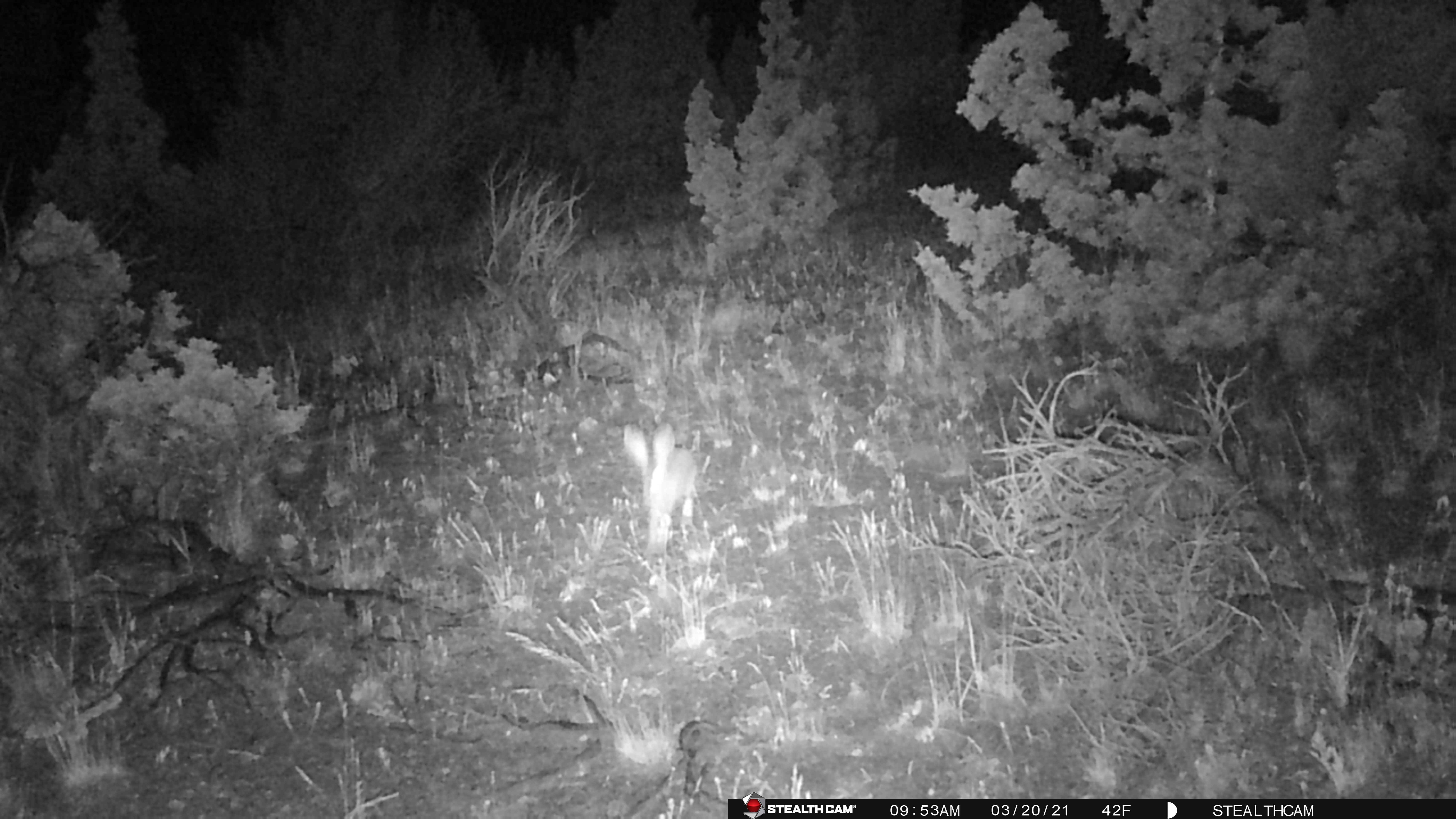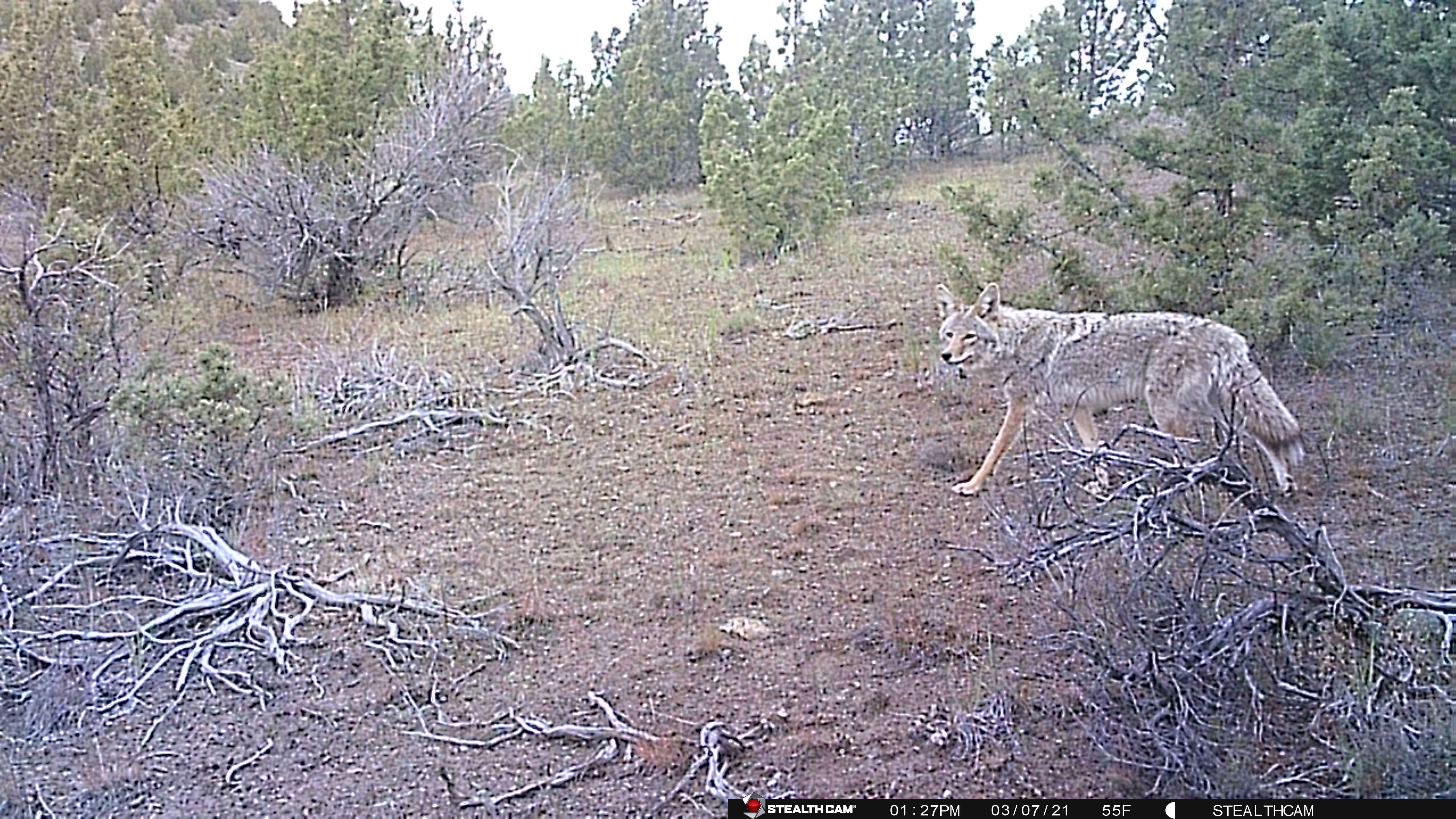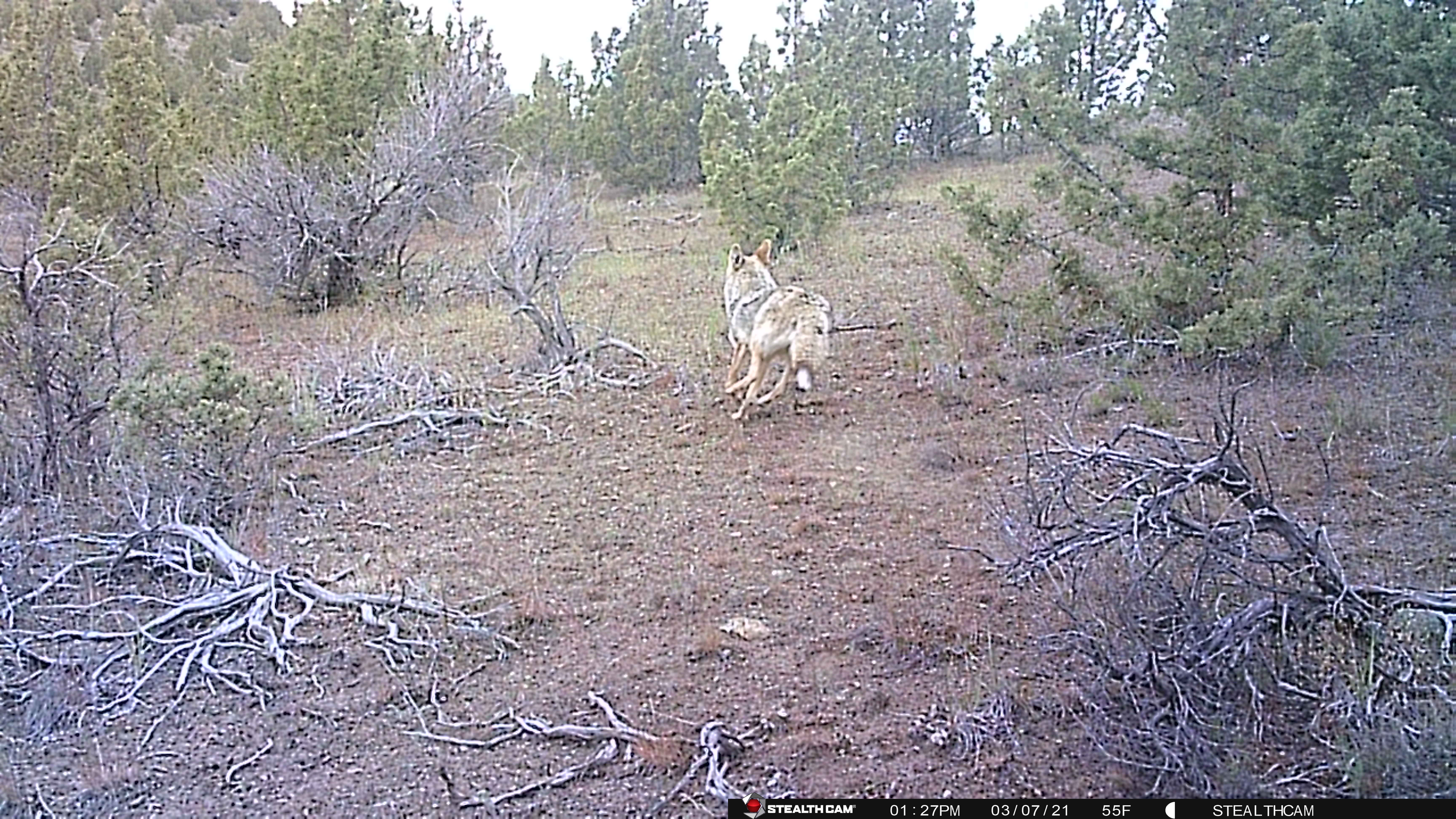 We arrived Friday, set up camp and unloaded the propane BBQ Steve picked up for $60 (used) so we could cook for everyone. Important note, in this part of Central Oregon fire bans start up around Memorial day weekend and go through Labor Day at least. This means no charcoal and no campfire – only propane. Steve’s mom and stepdad had a propane fire pit we were able to use in the evening for sitting and storytelling, we have since purchased one of our own because sometimes you just need a campfire. We grabbed the trailcams before it got too dark and tried to see what we got on the tiny screen because I forgot my computer (doh!). Steve placed his camera down in the lower part of the ravine and I placed mine on the trail ascending the larger bluff on the top of our property. Steve only had one picture, but it was absolutely a buck with fuzzy antlers! I got a bit more action, no buck, but did get a burst of shots of a coyote taking off up the trail. So cool! My camera also got a couple shots of a doe, one really close up which made all of us laugh pretty hard.
