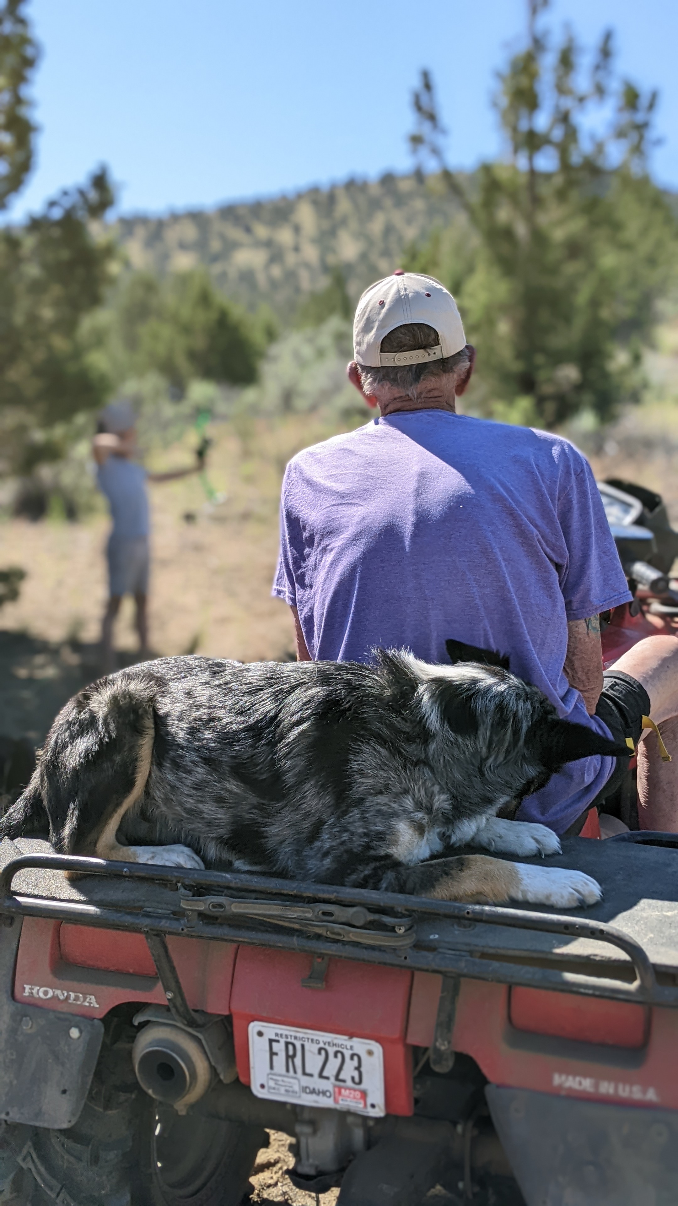 This was such a landmark visit though, it was our first trip up as hosts to guests! Our parents! There is nothing like the feeling of sharing your new favorite place on earth with those who brought you into this world. They loved it. The peace, the neighbors, the privacy, the views… All of it. (Maybe not the 97 degree heat, though). Steve’s mom and stepdad were going to bring their horses, but due to shipping delays they could not get suitable water tanks for their new trailer in time. They brought a 4-wheeler instead and it was a blast – we added it to our wish list for the homestead. They also brought their adorable six month old puppy Finn. We had the three campers and there was plenty of room and the road was just fine for everyone as long as we went slow and easy.