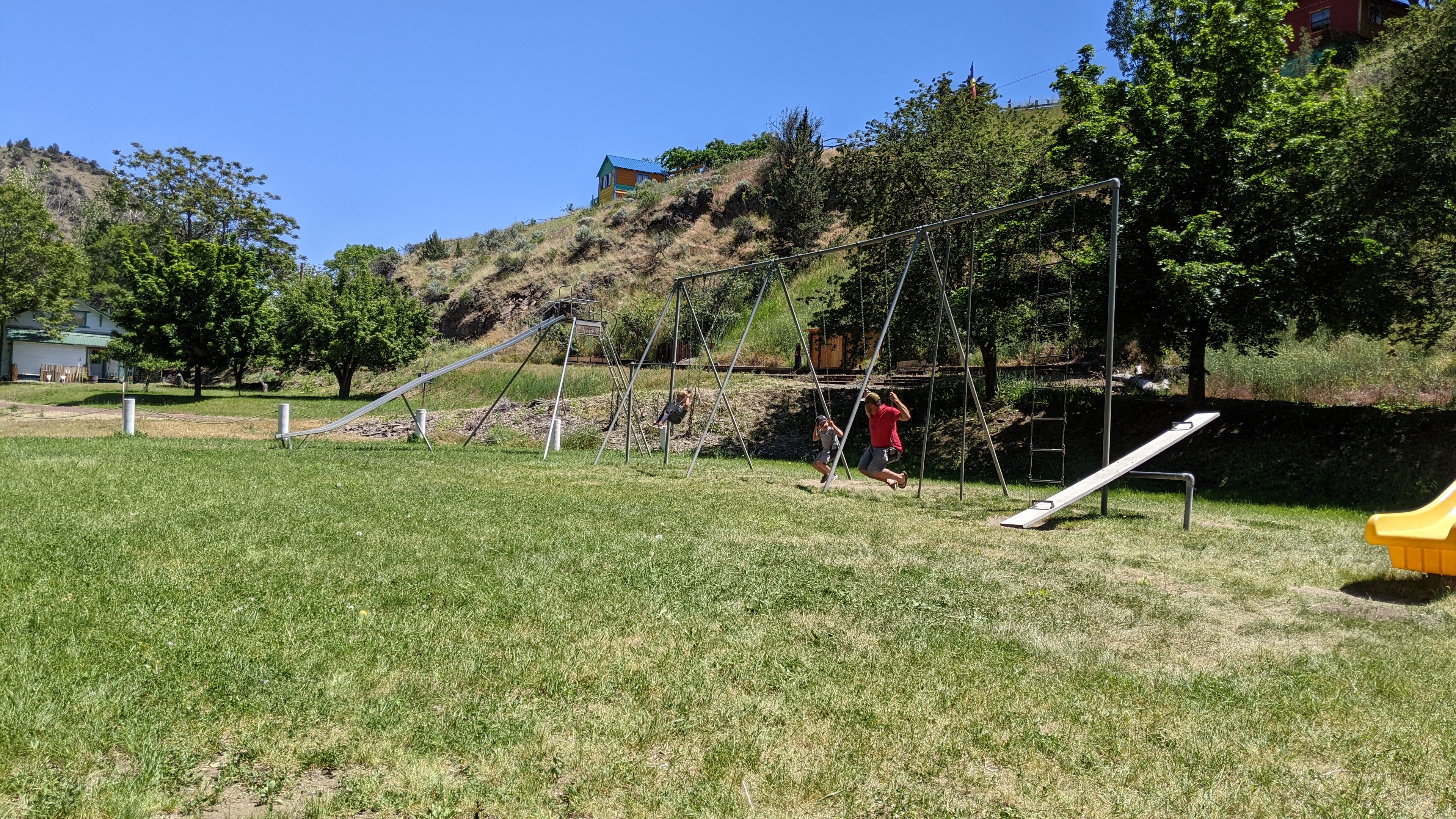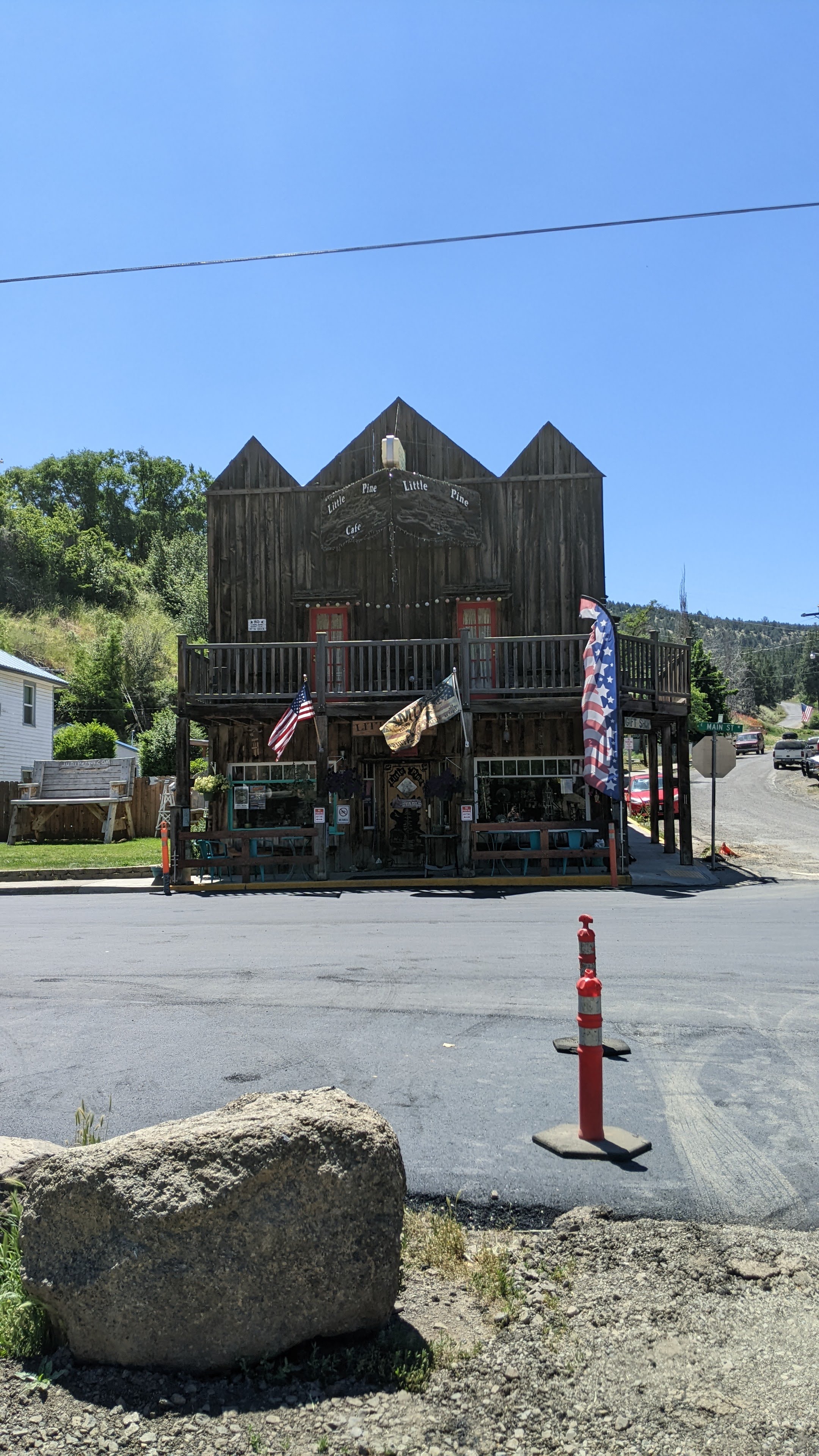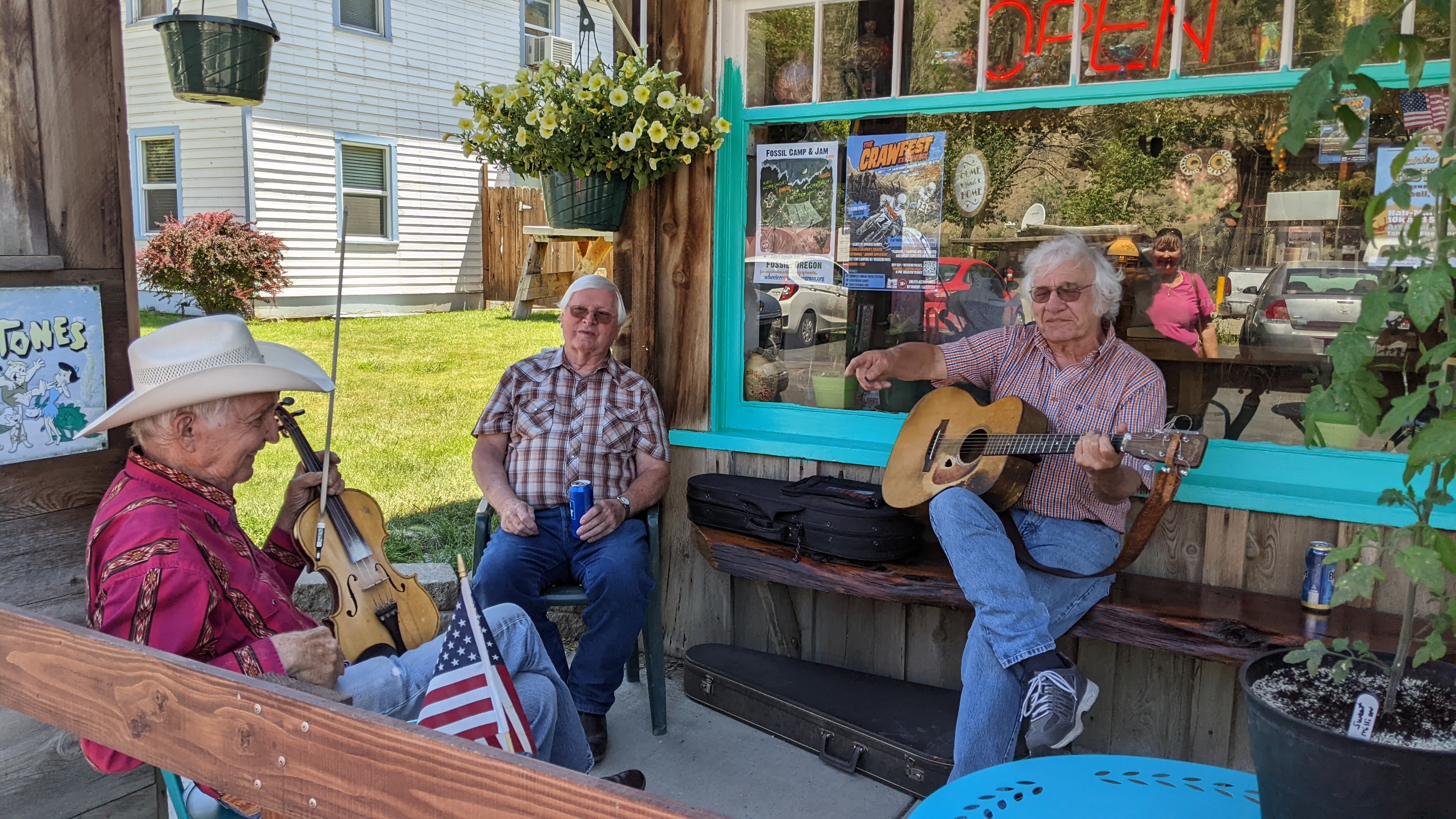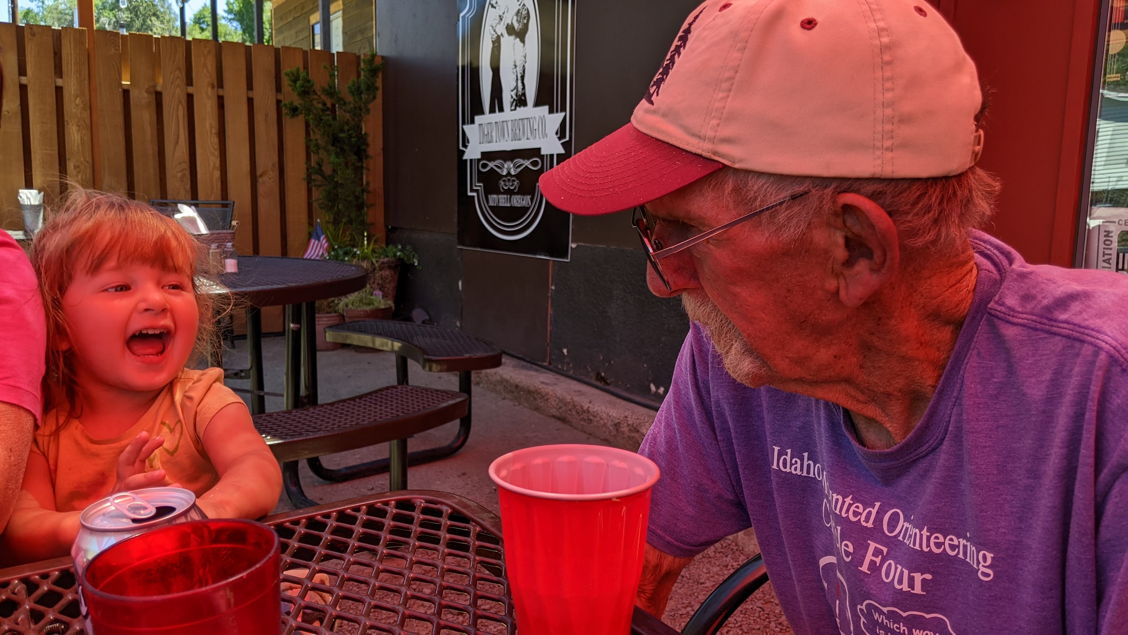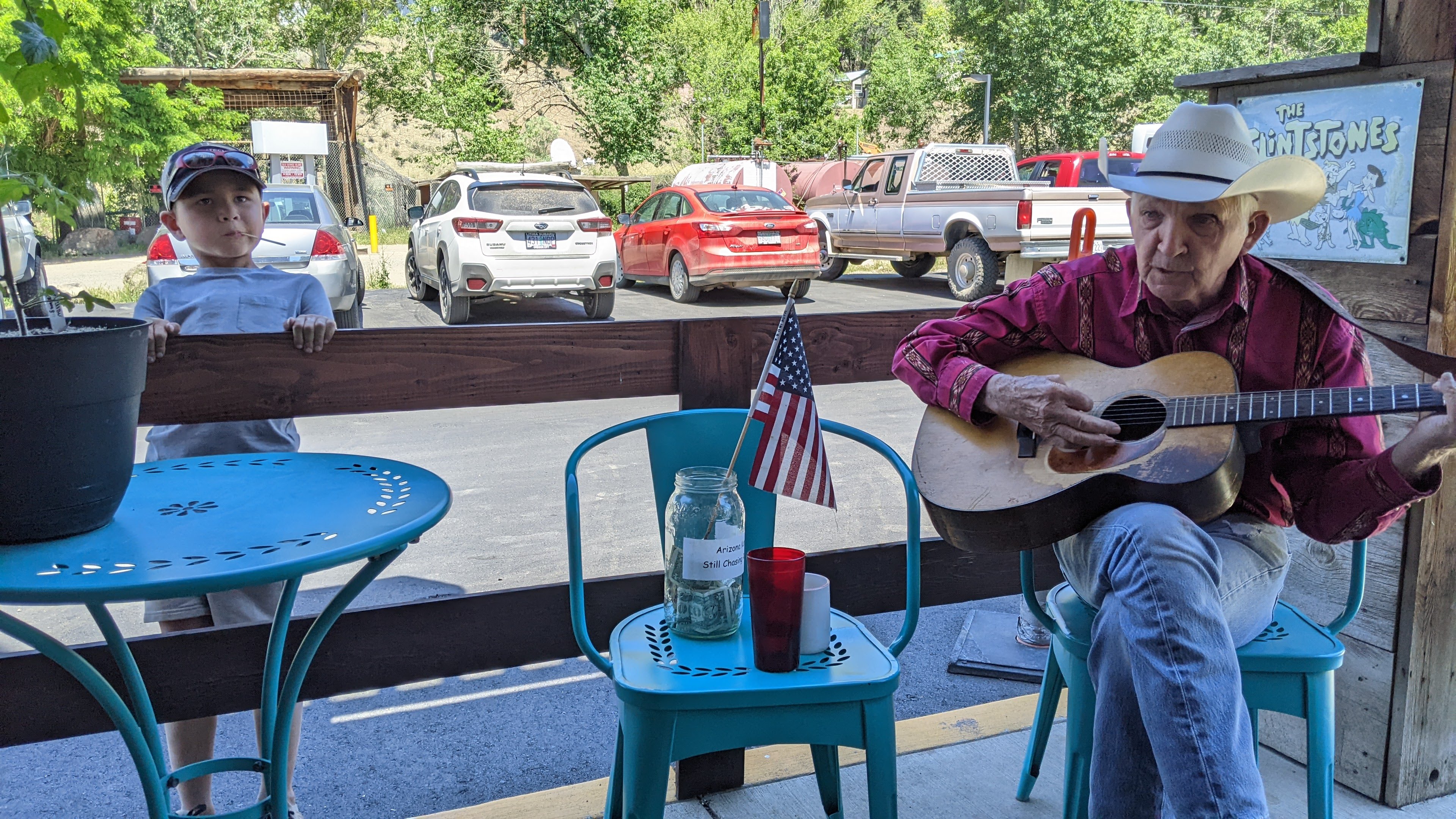Sunday we also bid farewell to Steve’s mom and stepdad by caravanning down to Mitchell for lunch at Tiger Town Brewing which was hoppin’! I was blown away at how bustling the little town of Mitchell was on this fine Sunday afternoon. Lunch and beers were incredible, of course, and the service was swift and friendly. After lunch, hugs, and good-bye’s the rest of us (me, Steve, kids, my mama) wandered town a bit. We got ice creams treats at the grocery place and enjoyed them on the patio of the Little Pine Café where we met Arizona a gentleman that, simply put, broke down here in Mitchell in 1959 and never went left. Originally from Arizona, he said that he left the mining business there in and headed north. He sang some great covers and even sang You Are My Sunshine to Fiona, one of my favorites. She was enamored with him.