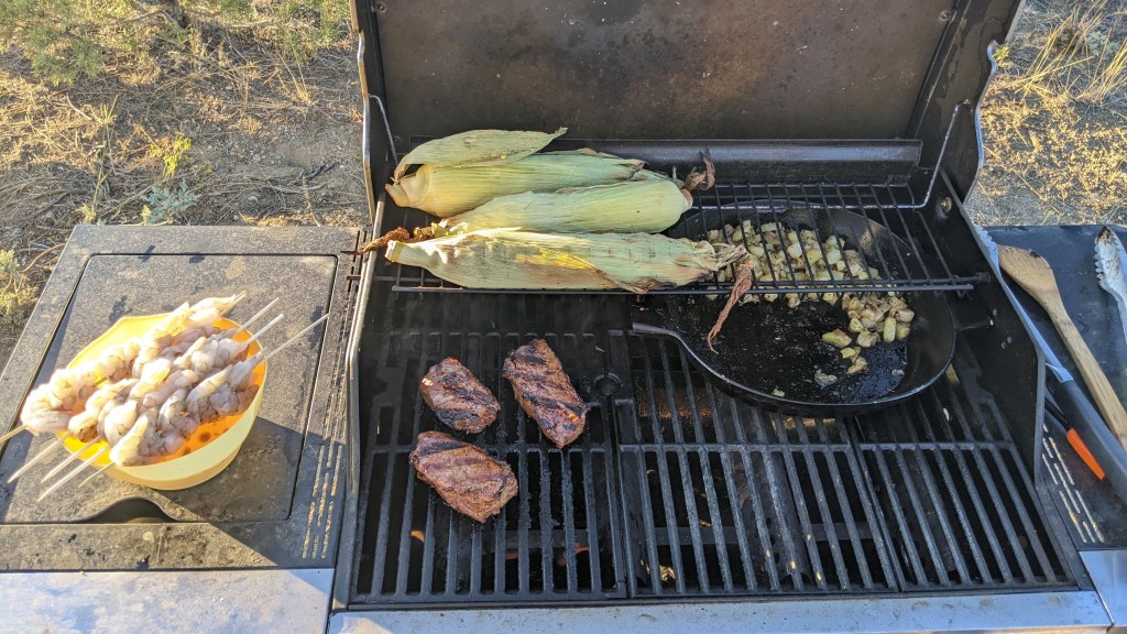 When we arrived on Friday it was almost 6pm so we had just shy of two hours of day light left, plenty of time to get things staged for the water pumping. We got to the spring site and… it.. was… DRY!!! We instantly felt so bummed, but let’s be realistic, it is August in the desert, it is not weird for things to dry up. I researched springs a bit and found some great explanation videos that brought me peace of mind, and hope, in that maybe the water will be back in the spring. So we headed up to the homesite to get ready for dinner and to close up our evening.