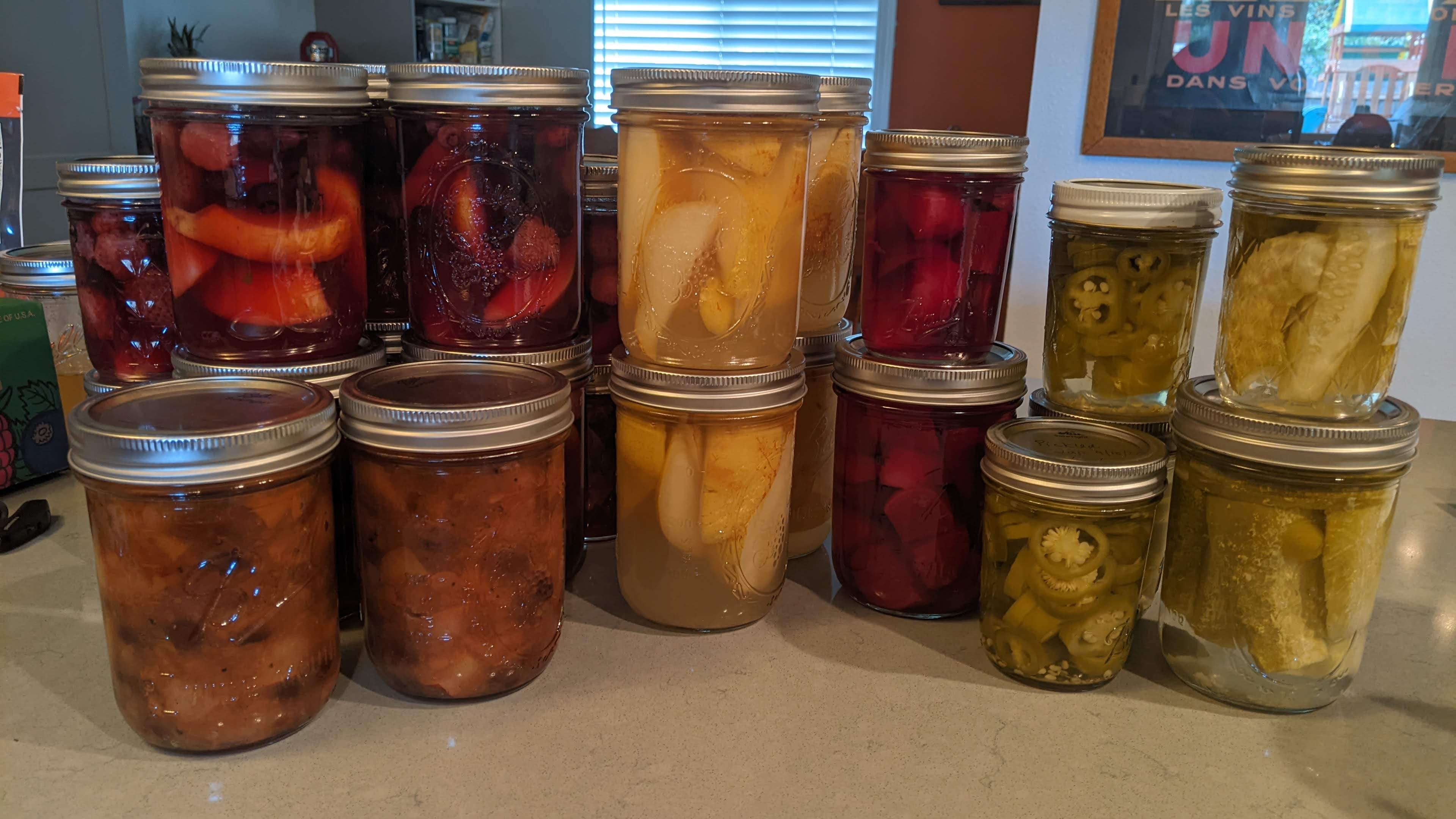 Wrapping up the summer at the urban homestead means that we are doing the final harvest of most things and starting the canning hustle. I canned about a dozen quarts of tomatoes in water to be used a base for anything over the winter. Over the summer I have also put about a dozen pints of pickles, a couple jars of green beans, and a few various pints of fruits. The chickens are starting to molt and as they get older they molt harder, poor Hey Hey is down to just a few feathers. She look so uncomfortable!