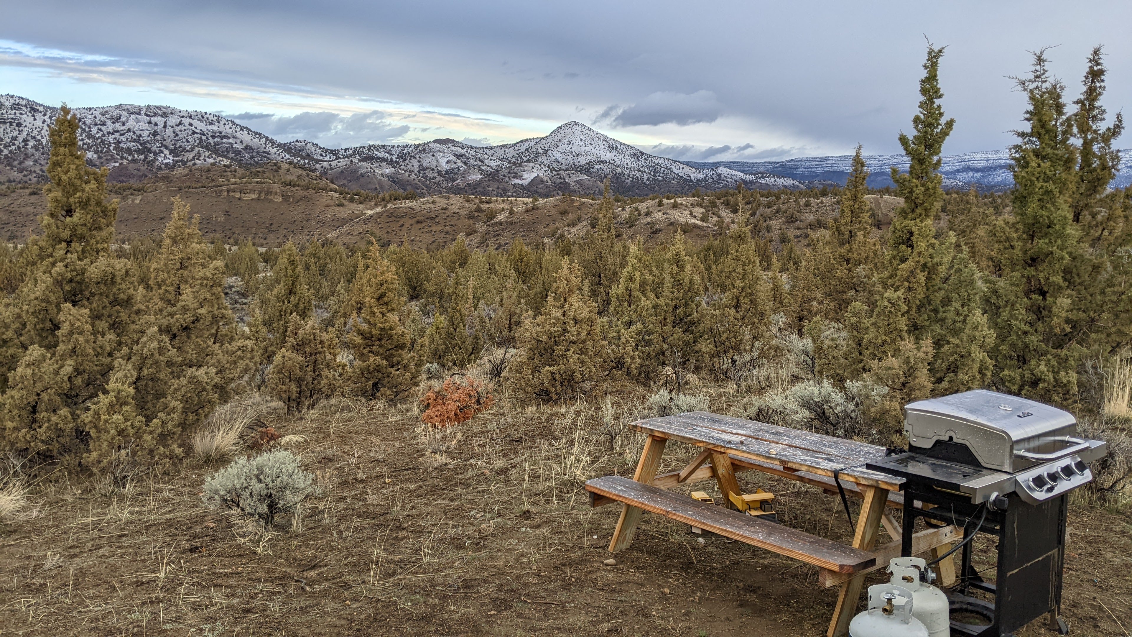 Our first visit of 2023 was the weekend of spring break, the last weekend in March and mother nature was still frosty as ever. We ended up having to take a longer route to the property this time because of the snow over the Santiam Pass. This alternate route was beautiful and gave us a very different view filled with windmills and snowy mountain peaks.