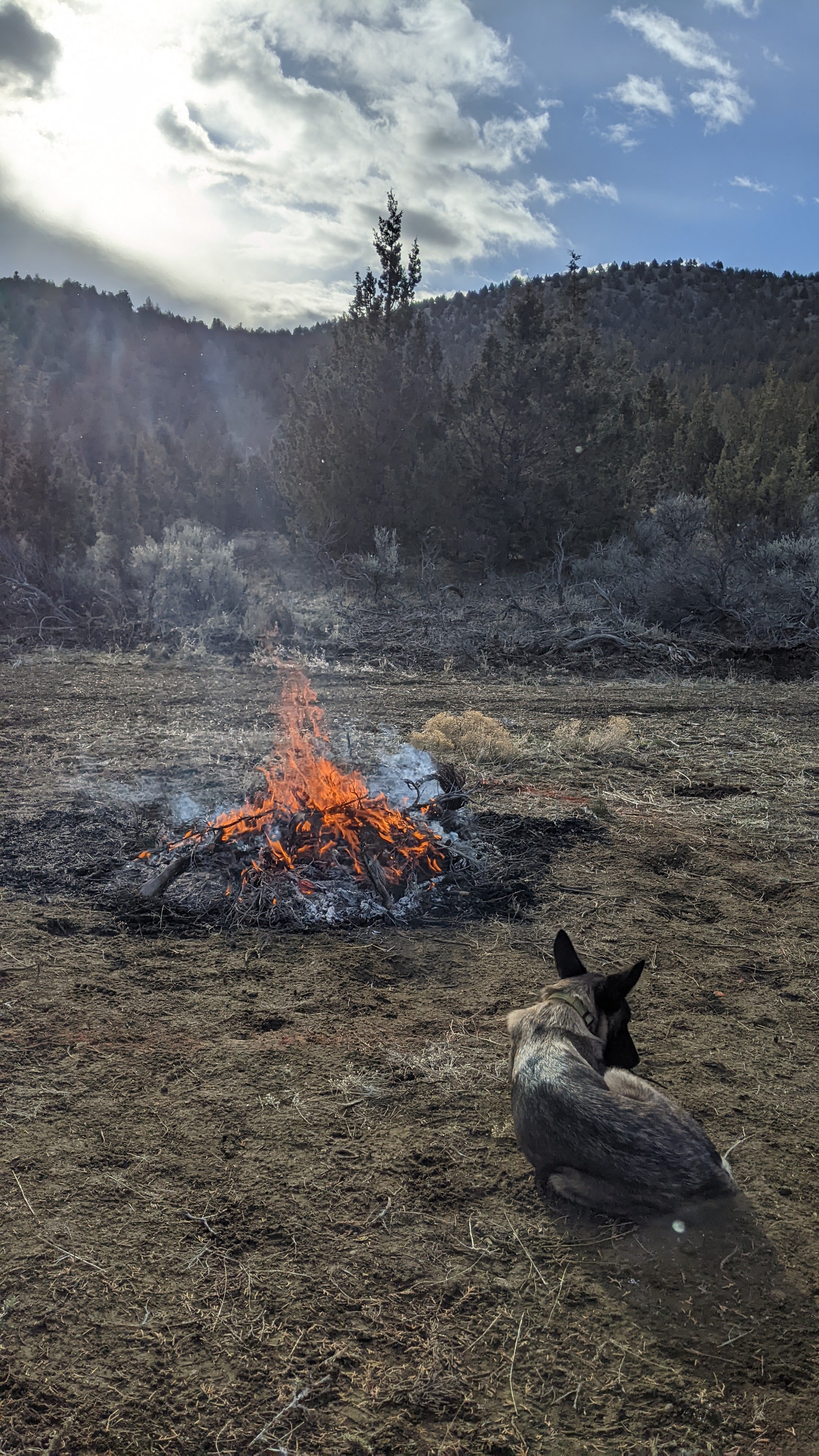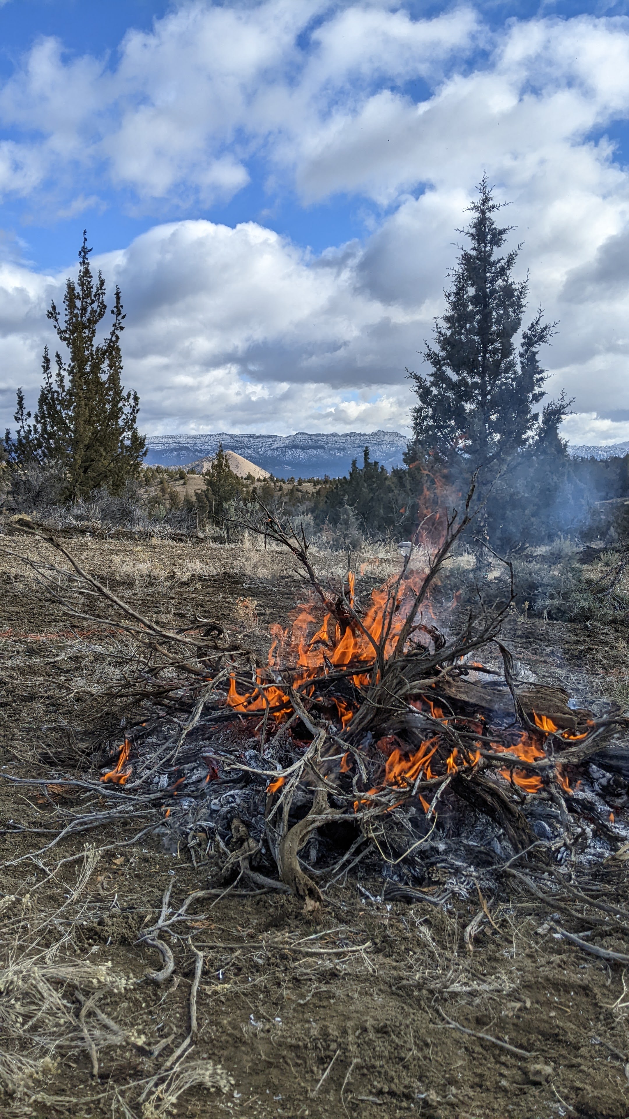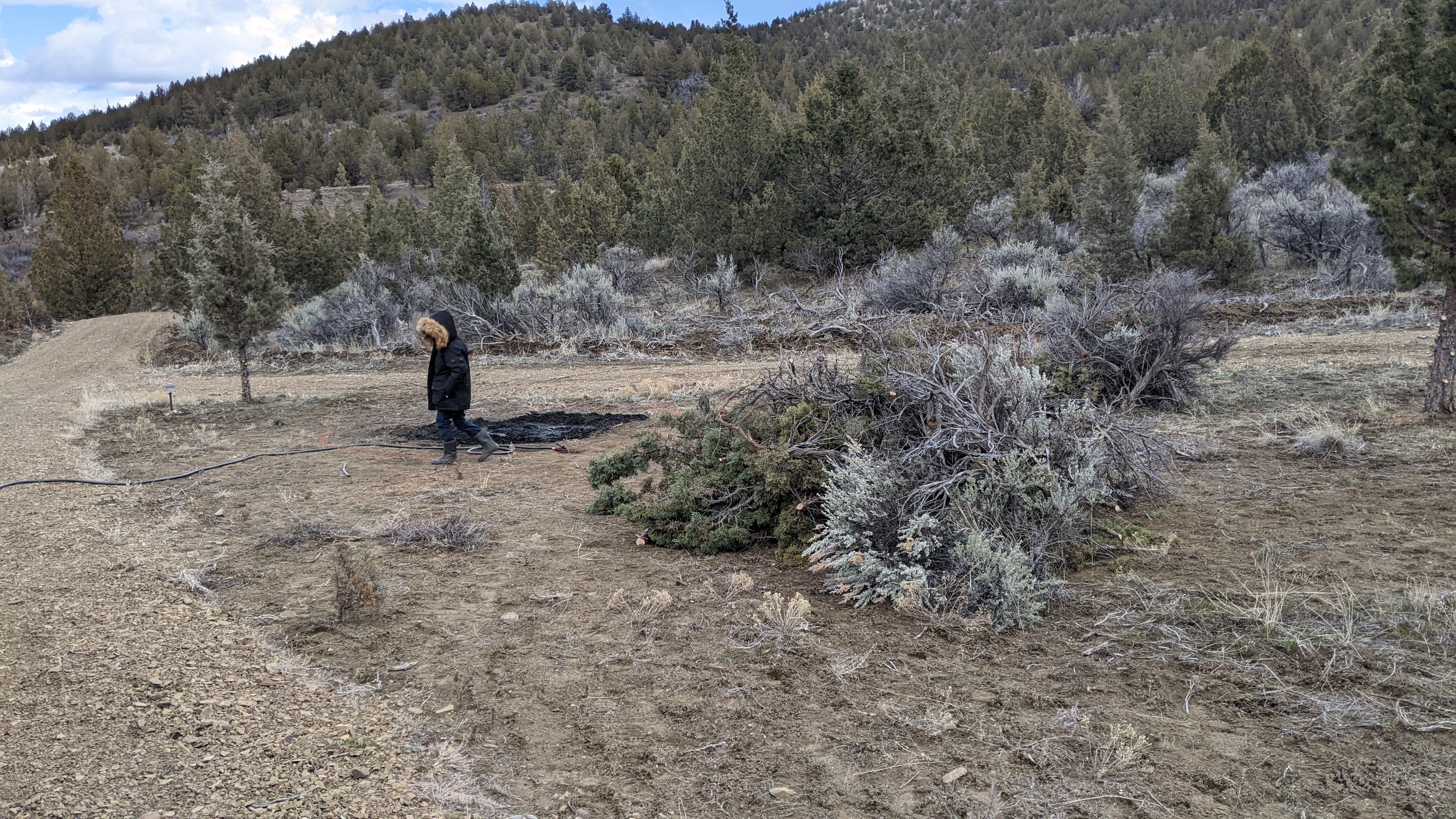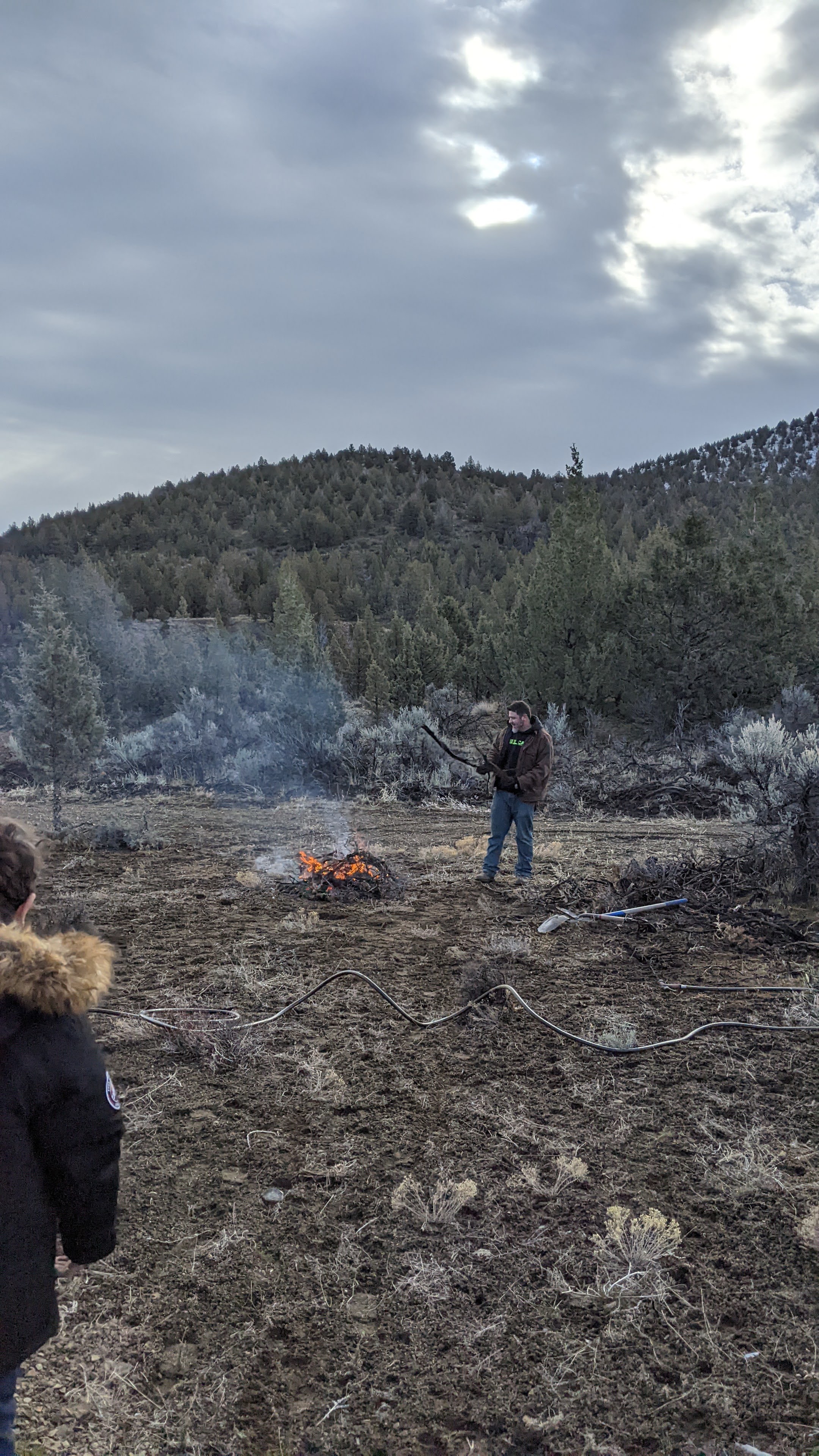 When we got to the property it was perfect burning conditions which is great because our main objective on this trip was to clear and burn brush from what will one day be our garden and livestock area. Being in the high desert, incredibly rural, part of Oregon establishing a fire barrier is an absolute must. We are going to start in the center of our driveway loop and start working our way out and eventually have an 8ft barrier from any planned future structure.