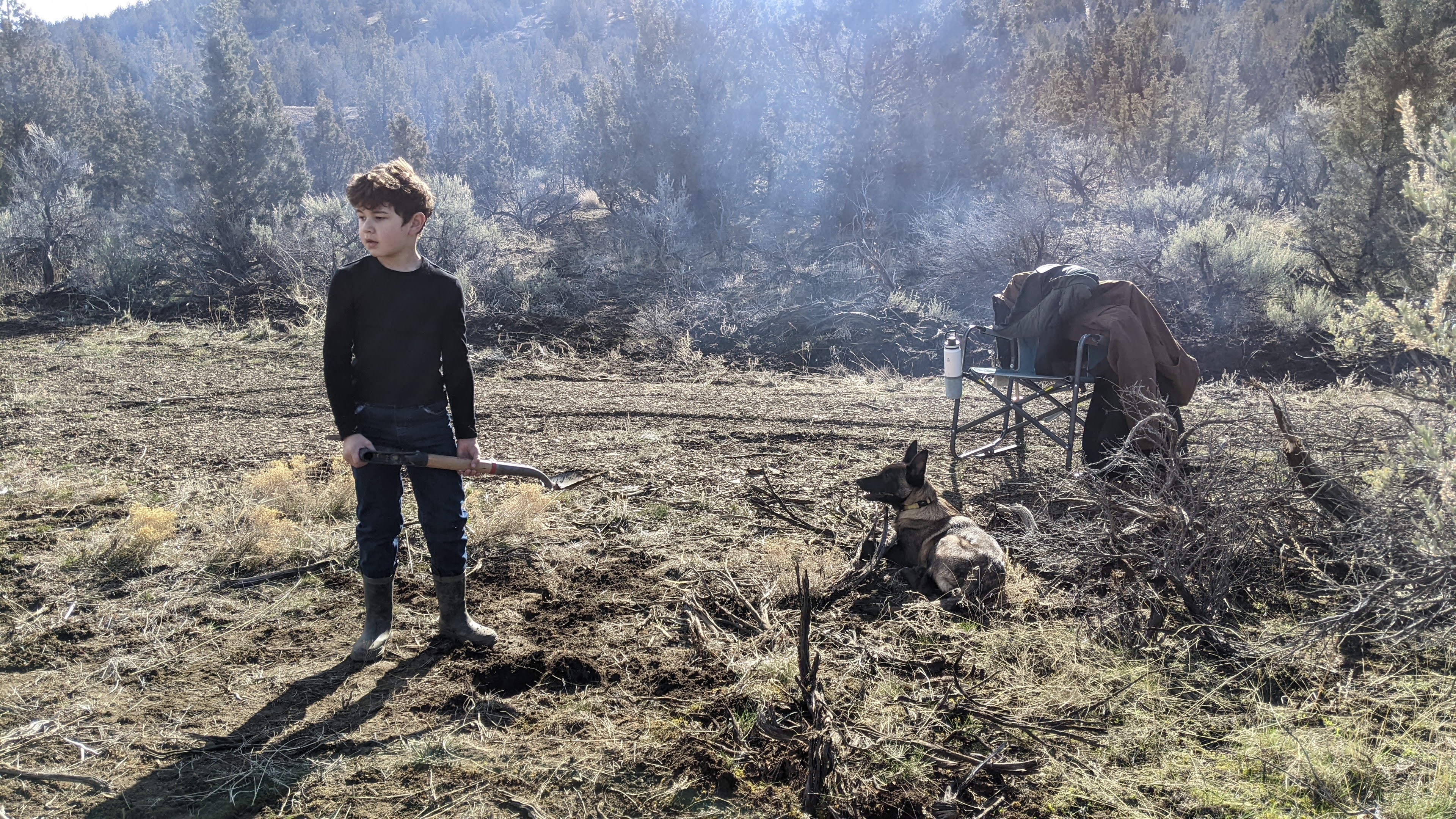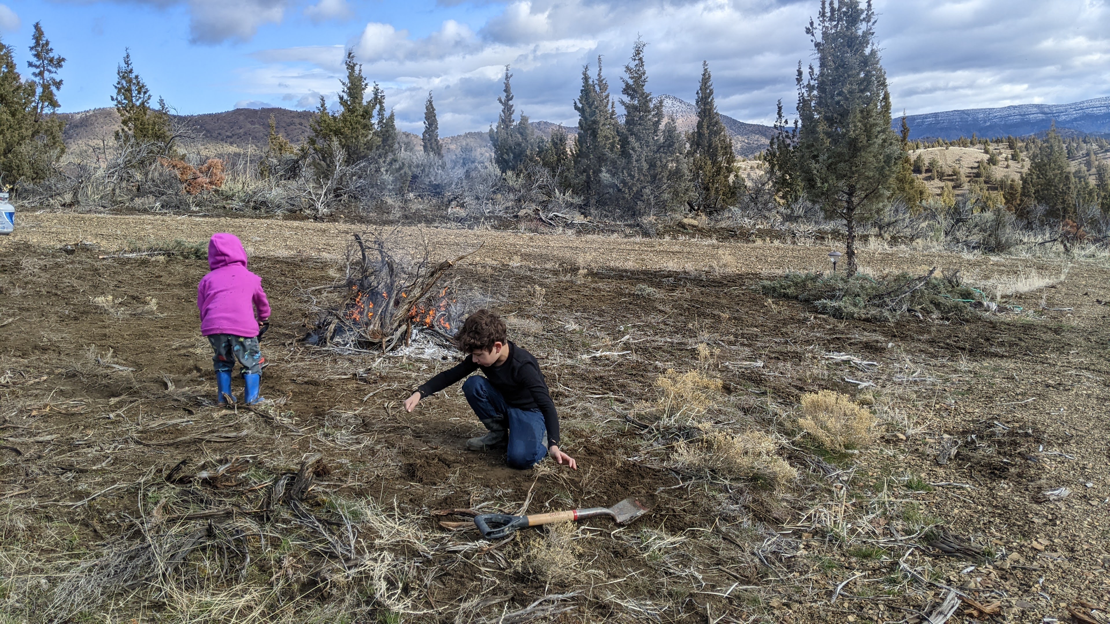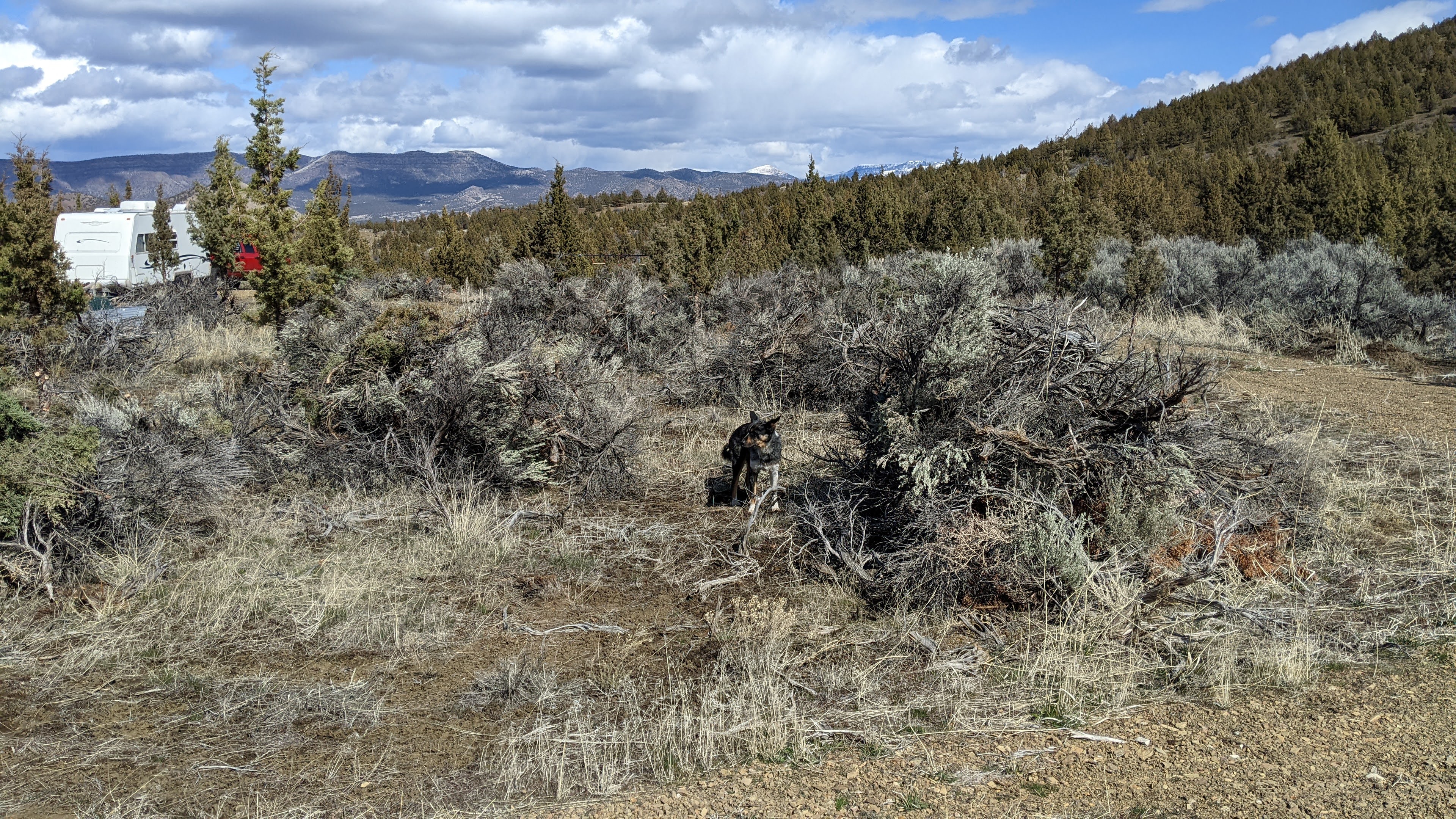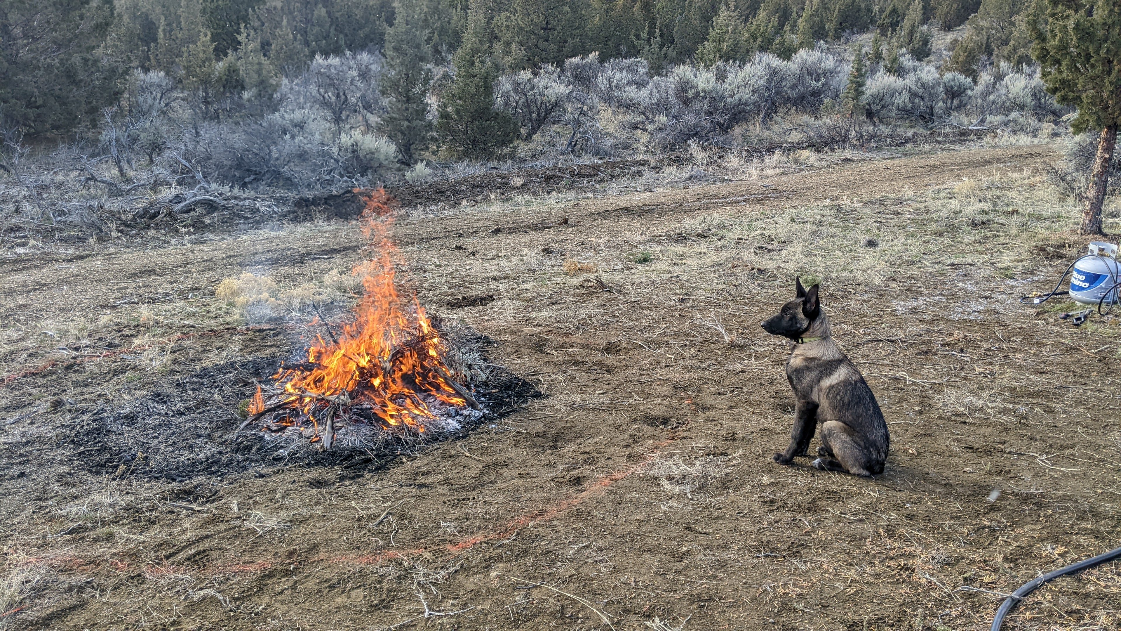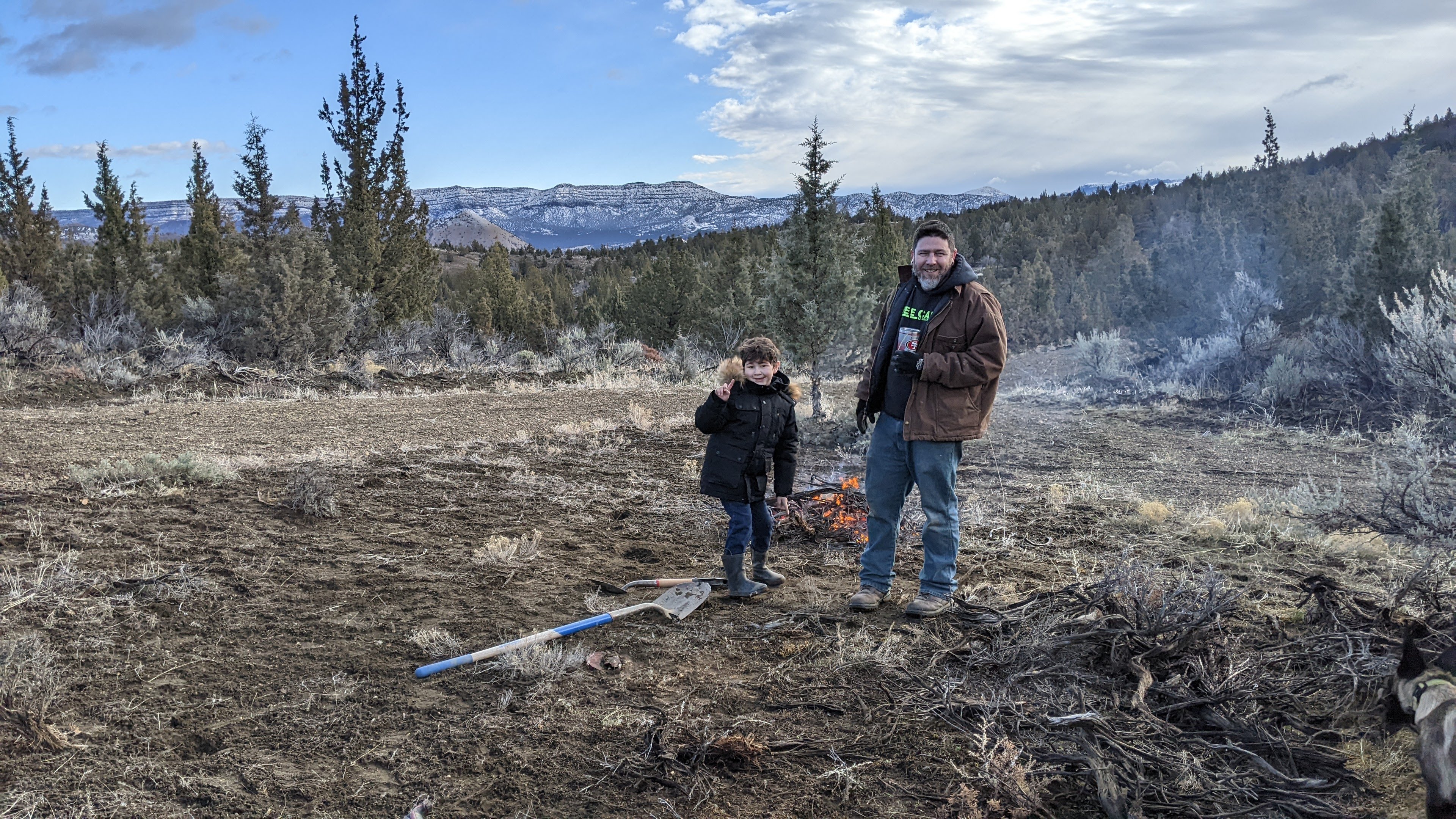 When we got to the property it was perfect burning conditions which is great because our main objective on this trip was to clear and burn brush from what will one day be our garden and livestock area. Being in the high desert, incredibly rural, part of Oregon establishing a fire barrier is an absolute must. We are going to start in the center of our driveway loop and start working our way out and eventually have an 8ft barrier from any planned future structure.